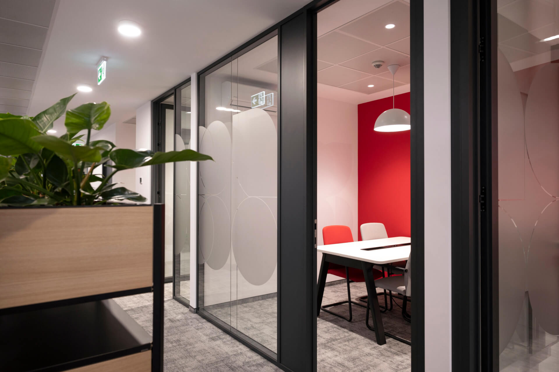 Unser Zweischeibensystem GSW Office Plus und die Türen Urban Plus sorgen für eine klare Struktur und die Kohärenz des gesamten Interieurs, indem sie es dezent gliedern. Dank dieser Lösungen wirkt das Büro offen und lichtdurchflutet, ohne dabei an Privatsphäre einzubüßen.