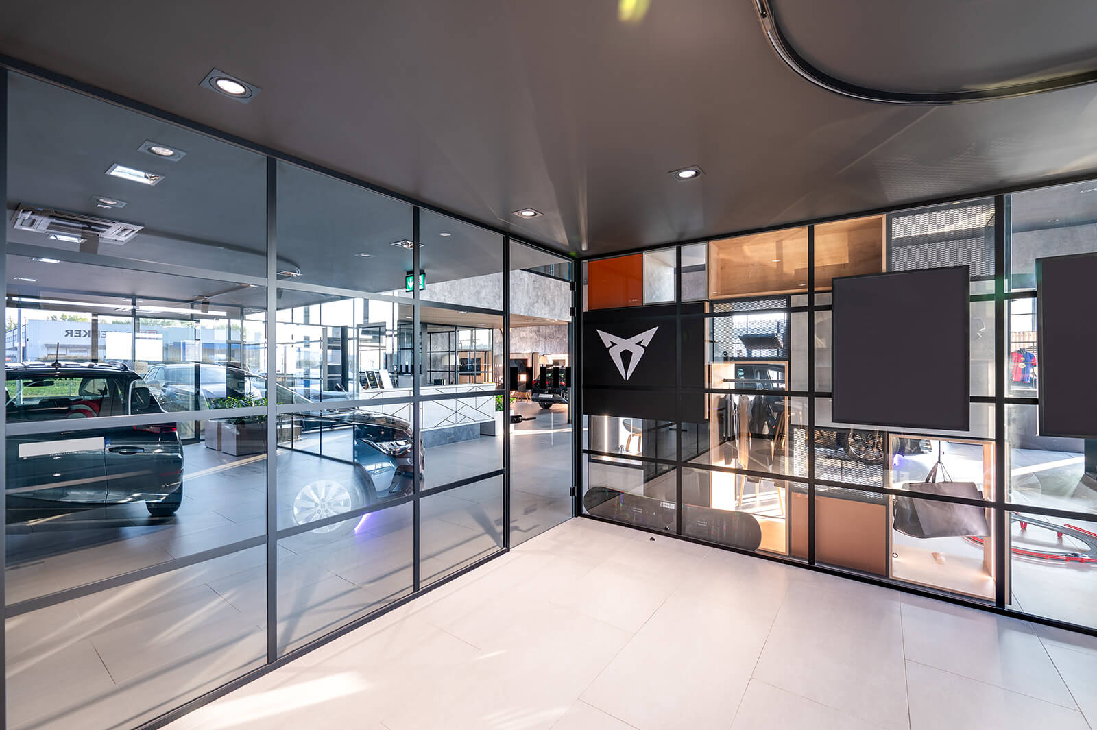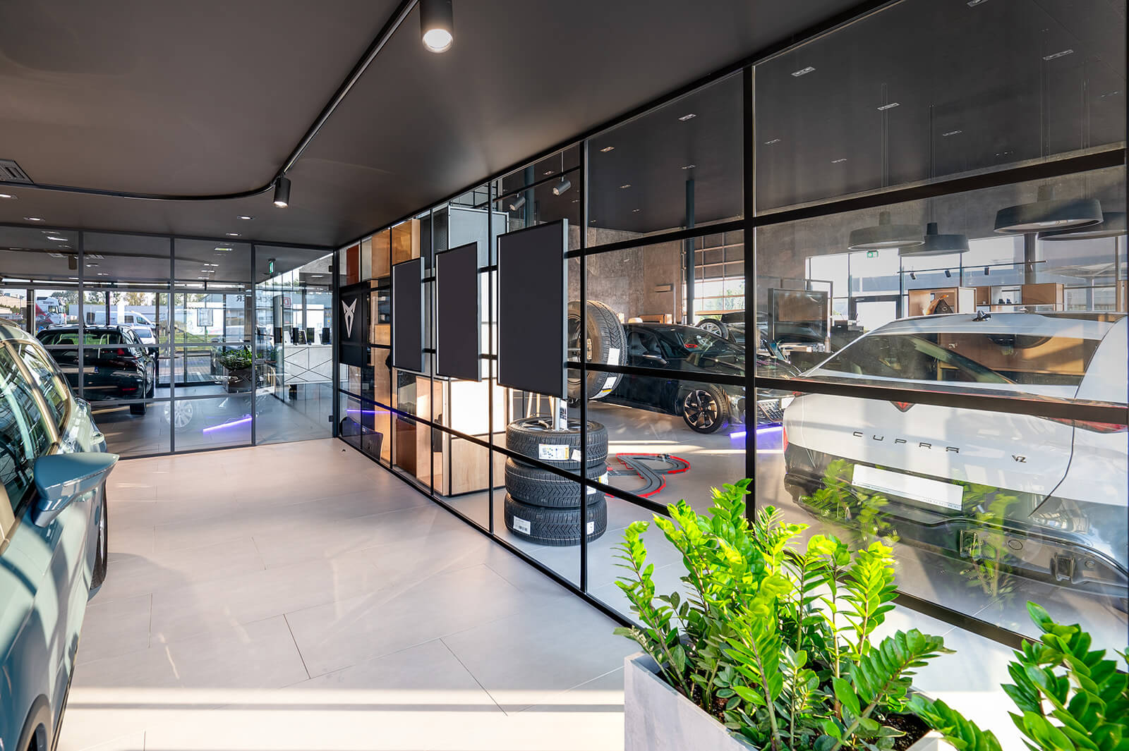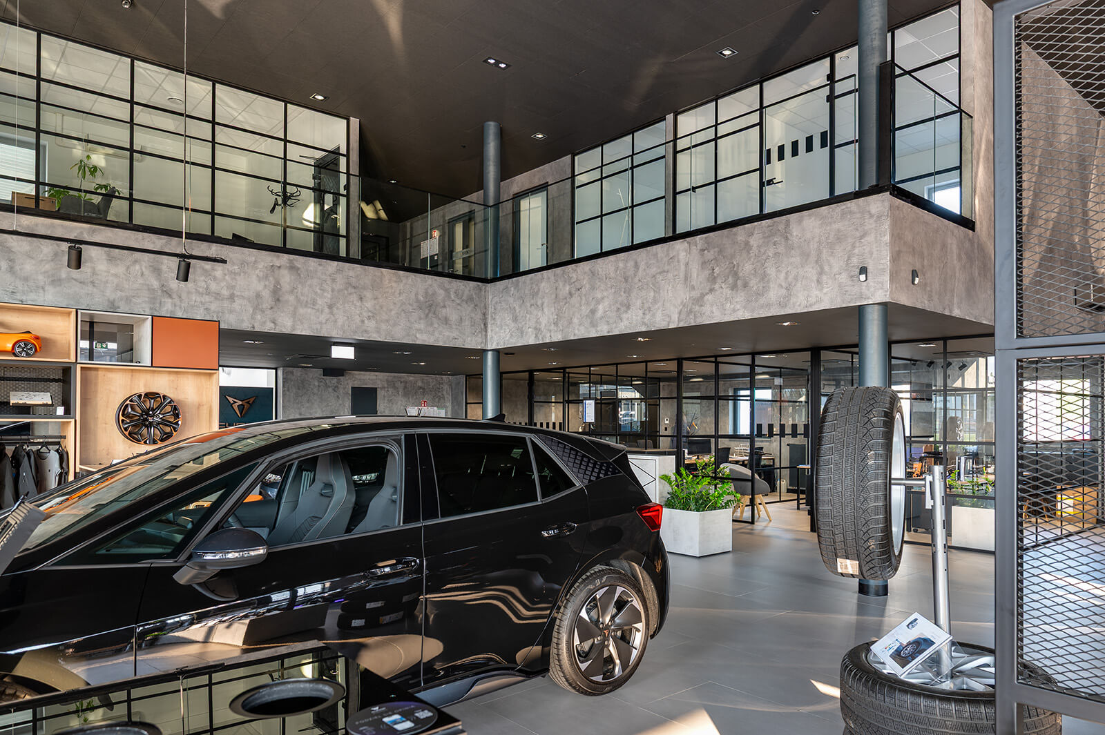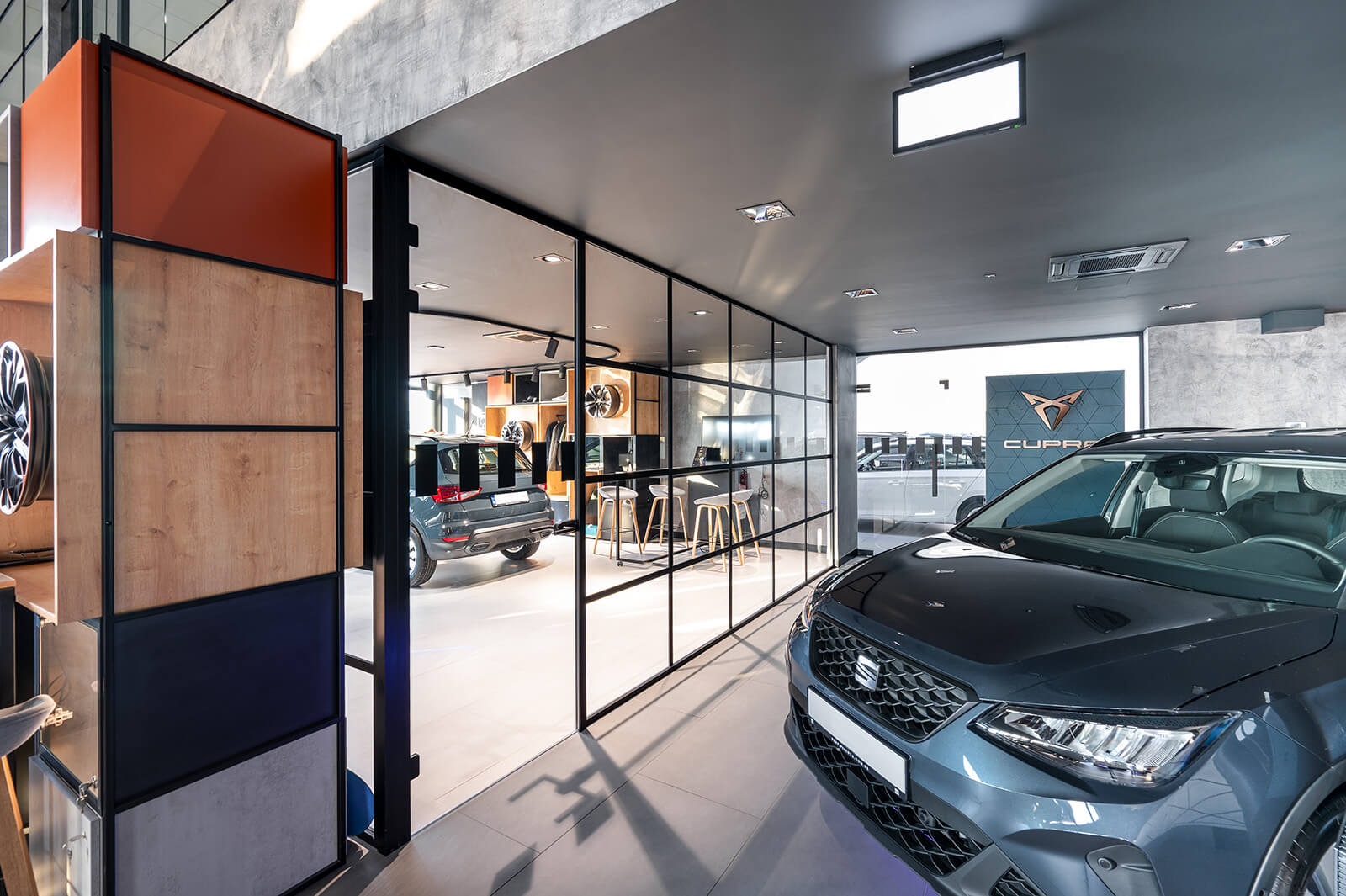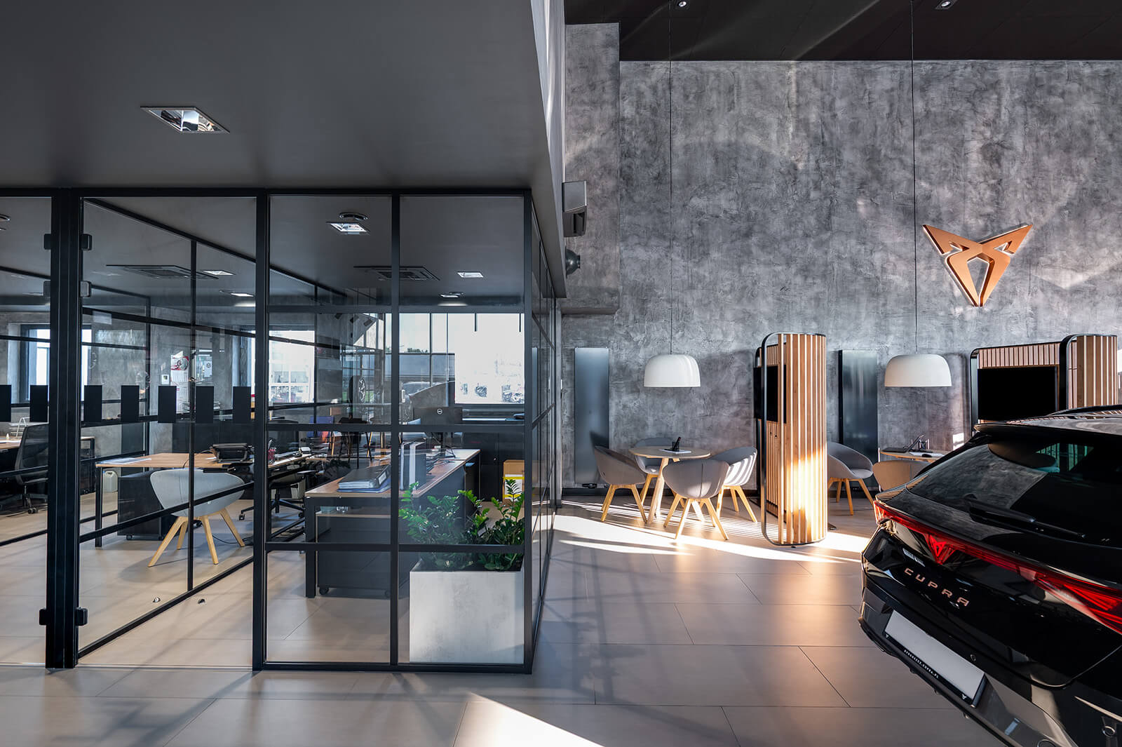 Wnętrze salonu motoryzacyjnego nie musi być surowe i monotonne. Ta realizacja bydgoskiego salonu CUPRA pokazuje, że przestrzeń dla miłośników motoryzacji może być równie inspirująca jak nowoczesne biuro.